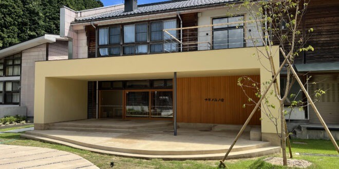 ナギノ森ノ宿は智頭町の那岐地区にある、旧那岐小学校の木造校舎をリノベーションした宿泊・銭湯施設です。