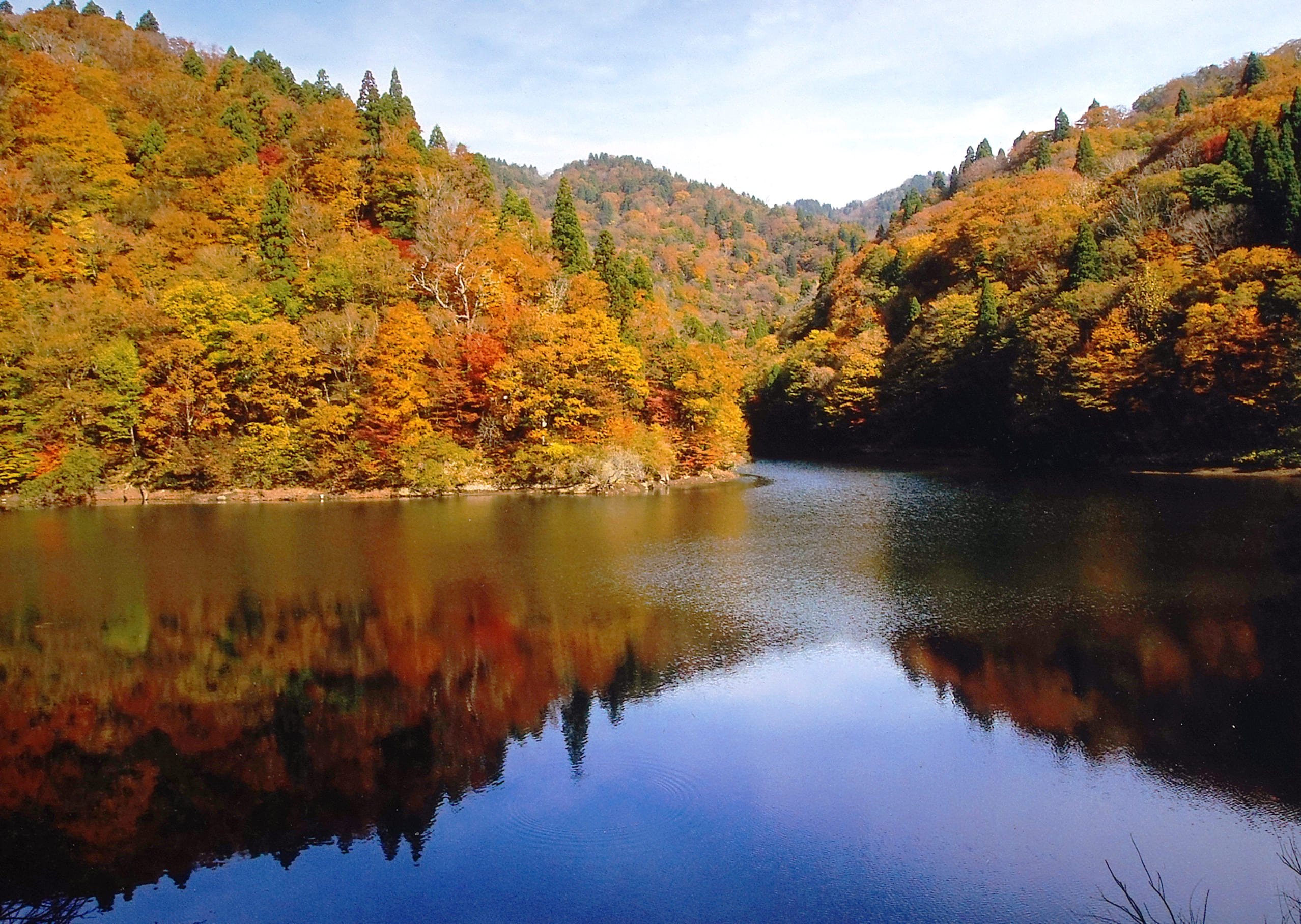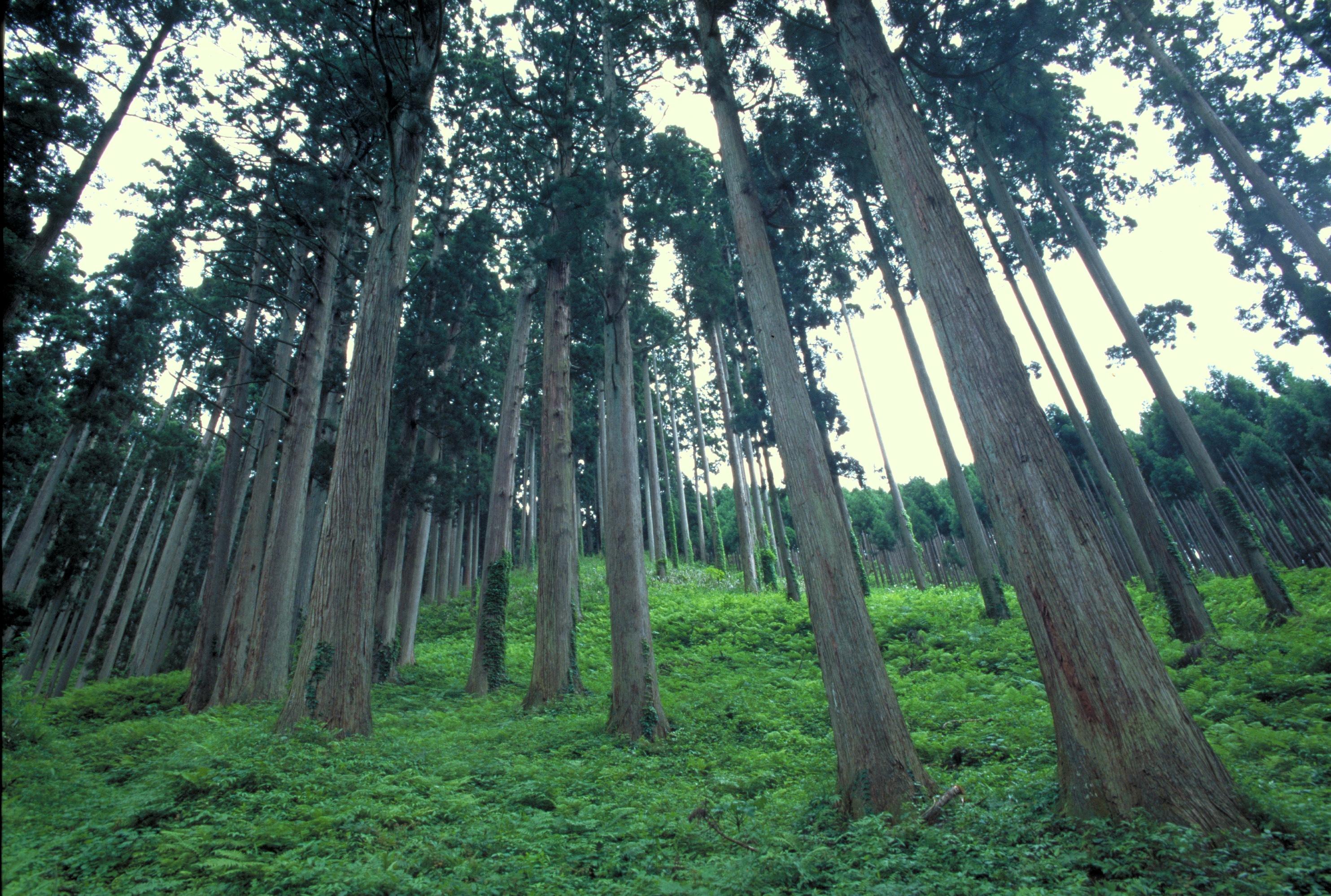 町の総面積の9割以上が山林で、スギをはじめとする見渡すかぎりの緑が一面に広がります。春には、ソメイヨシノ、シャクナゲ、ドウダンツツジ、夏には清涼な緑が、秋は紅葉、そして冬には雪化粧と、1年を通してまちを彩る植物や、美しい自然にあふれています。