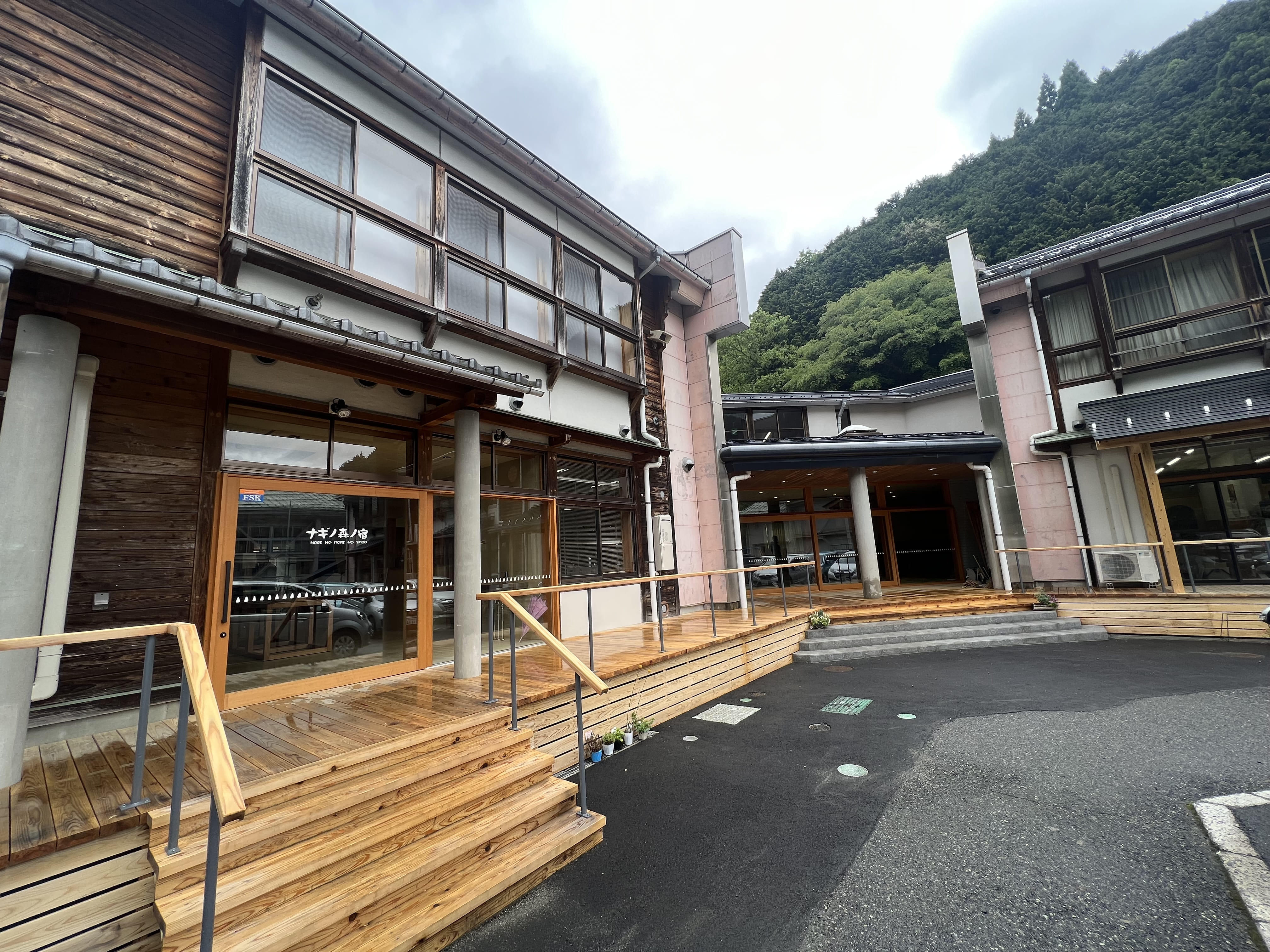 ナギノ森ノ宿は智頭町の那岐地区にある、旧那岐小学校の木造校舎をリノベーションした宿泊・銭湯施設です。