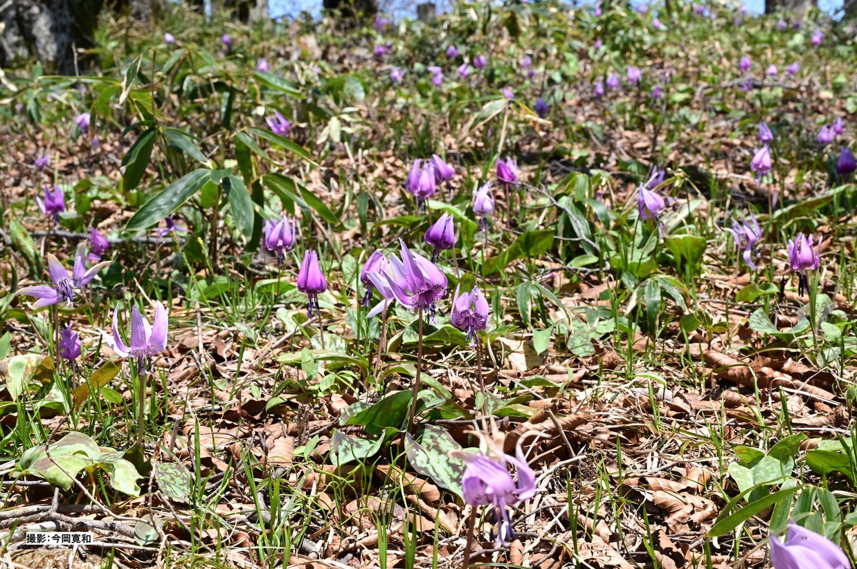 山頂からは大山、蒜山、弓ヶ浜半島を一望できます。春には高地でしか見れない「カタクリの花」が群生しています。